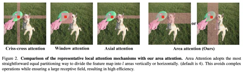 首先介绍 area attention 机制,其目的在于降低传统 attention 的计算代价,同时克服线性注意力和局部注意力在全局依赖性、稳定性及感受野方面的局限性。为此,作者提出了一种简单高效的区域注意力(A2)模块。