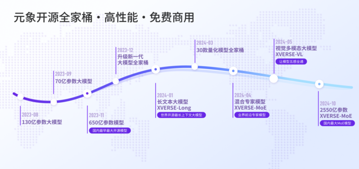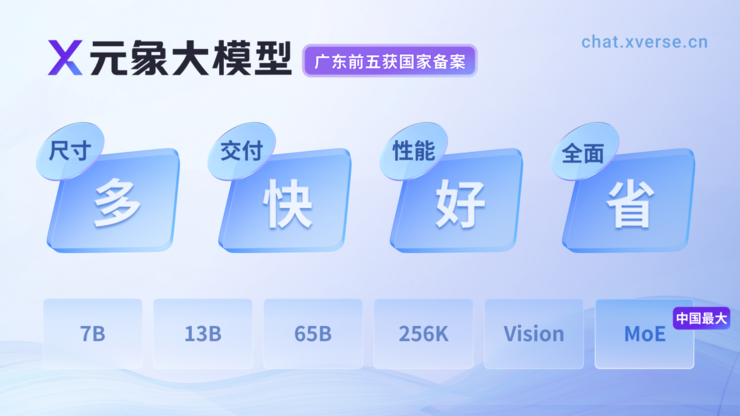 2023年11月,此前国内大部分开源参数多在7B到13B,而行业共识是模型达到50到60B参数门槛,大模型才能“智能涌现”,生态亟需“大”模型时,元象率先开源了XVERSE-65B,是当时中国最大参数开源。