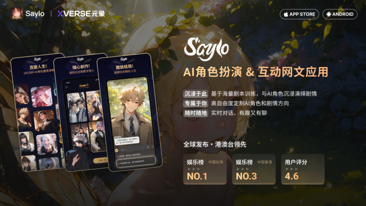 元象基于MoE模型自主研发的AI角色扮演与互动网文APP Saylo,通过逼真的AI角色扮演和有趣的开放剧情,火遍港台,下载量在中国台湾和香港娱乐榜分别位列第一和第三。