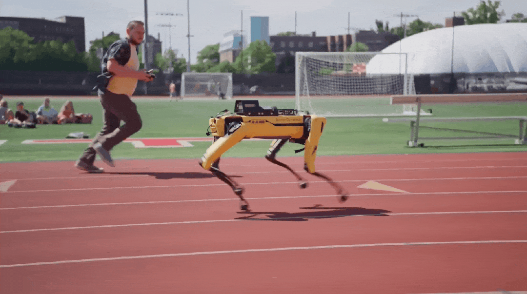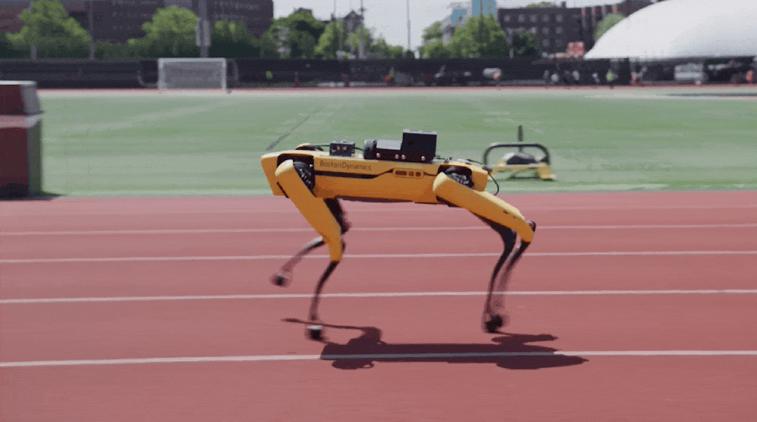Spot 出厂时最快速度只有 1.6 米 / 秒。几周前与波士顿动力官宣合作的 RAI 研究所带来了最新突破,Spot 的跑步速度提升了近 3 倍,达到了时速 18.7 千米。