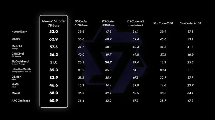 代码开源模型Qwen2.5-Coder 是为编程特别设计的模型,包含1.5B、7B两个版本,通义团队还预告了Qwen2.5-Coder -32B也在开源的路上。这组模型最多支持 128K tokens 上下文,支持 92 种编程语言, 7B 版本打败了更大尺寸的 DeepSeek-Coder-V2-Lite 和 Codestral-20B,成为当前最强大的基础代码模型之一。