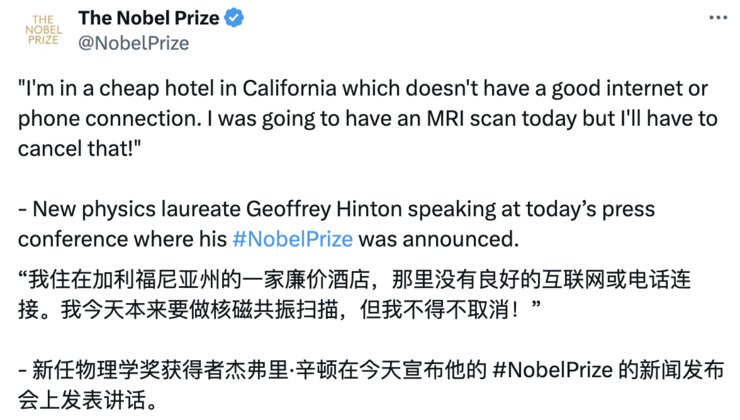 诺奖官方一条简短的推文,直接让推特炸开了锅。