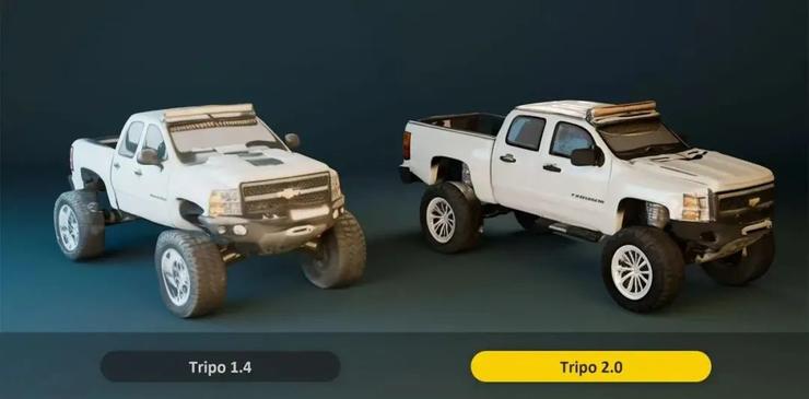 以上是Tripo 3D大模型生产模型的一些案例,可以看到Tripo 2.0相比Tripo 1.4生成效果明显提升