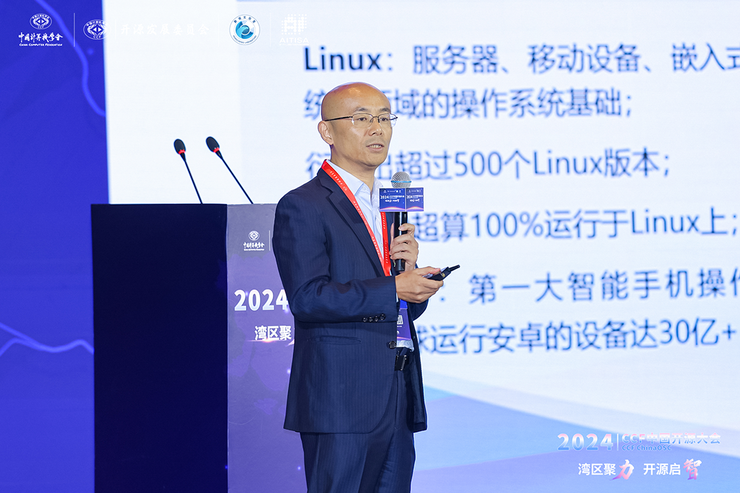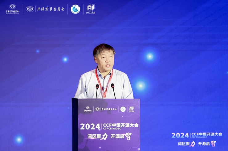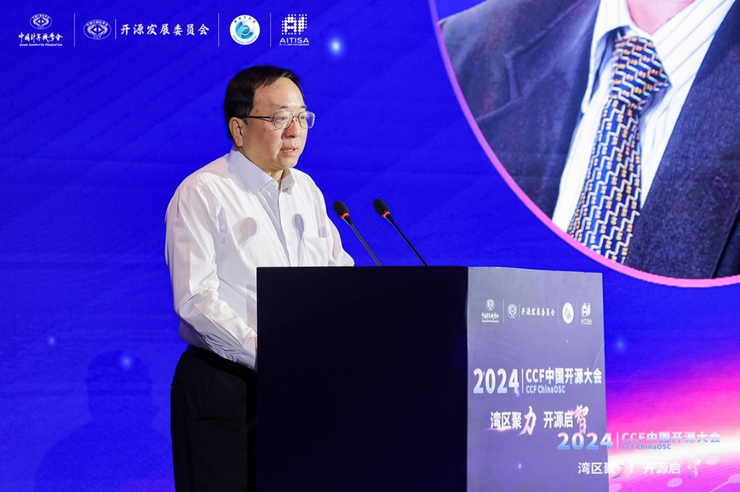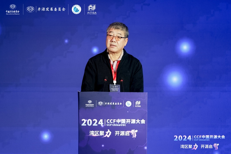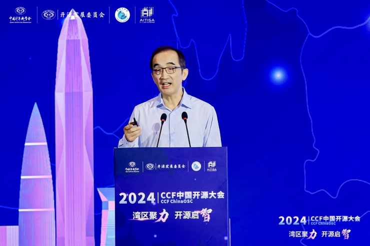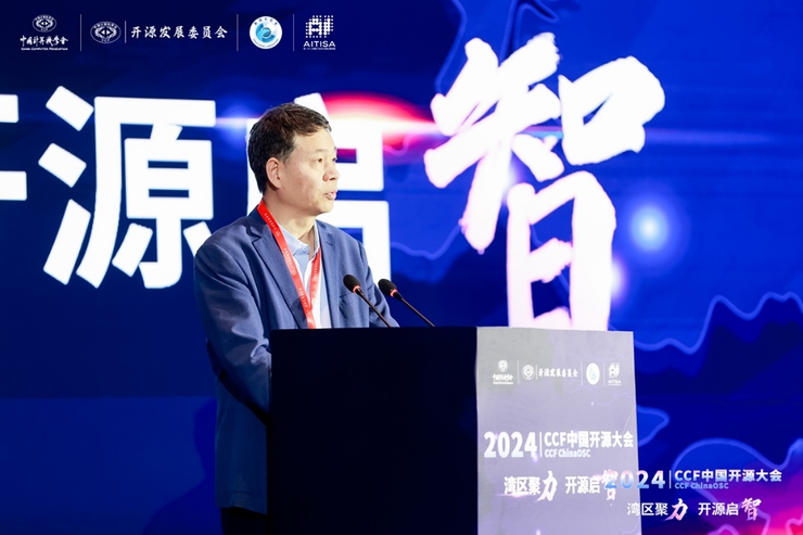 随后,中国计算机学会金海副理事长上台致辞,他表示:中国计算机学会自1962年成立以来,已成为中国计算机领域最具影响力的专业社团,拥有超过13万会员。中国计算机学会致力于服务专业人士,推动计算机事业发展,每年举办众多学术会议和论坛,促进技术交流与应用。CCF开源发展委员会自2021年成立以来,专注于平台建设、项目孵化和人才培养,助力中国开源生态发展。2024CCF中国开源大会在深圳举办,旨在汇聚顶尖科技力量,探讨人工智能的未来,推动技术创新与产业升级。在这个开源推动科技创新的时代,我们期待开源的力量为中国科技创新和社会进步带来更多成果。