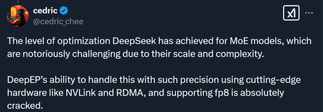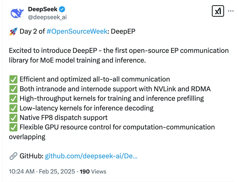 MLA 和 MoE 架构改进可以说是 DeepSeek 的两大重要创新点。昨天是对 MLA 解码内核的优化,今天就公开了另一张王牌 MoE 如何高效通信和并行处理,DeepSeek 可真是太 Open 了!