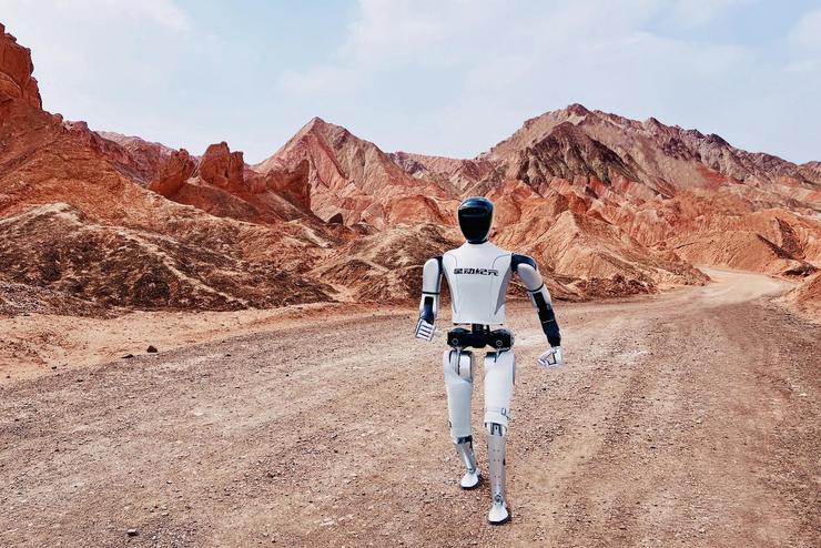 在硬件方面,业界对于如何制造高爆发力双腿和灵巧手尚无统一的解决方案。陈建宇团队就先从腿部开始,从前两代的 MPC 逐步升级到 2023 年以强化学习为核心的步态行走网络,让机器人能在雪地、长城、戈壁滩等复杂路面上稳定快速行走。