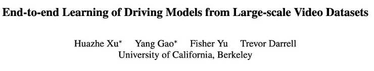 2016 年,许华哲也从清华毕业来到伯克利 Trevor 组读博,首个项目便是与高阳合作的端到端自动驾驶课题,被 CVPR 2017 录取为 Oral Paper 。