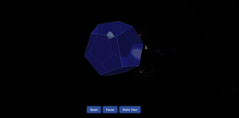 一个三角球在十二边形内弹跳,每次弹跳时球都会改变颜色,背景是太空。