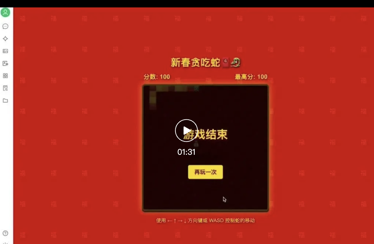 有网友用 Claude 3.7 Sonnet 编写新春版贪吃蛇游戏,一次成功。
