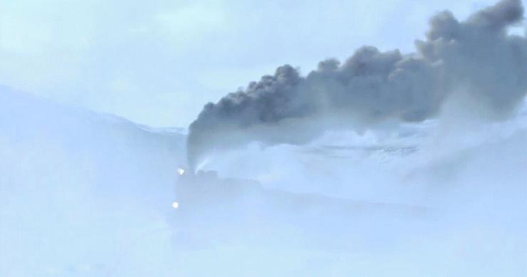 视频由腾讯混元视频生成,提示词:暴风雪中,一列蒸汽火车在崎岖山间穿行,黑烟从车头直冲云霄,车厢在皑皑白雪中留下深邃轨迹,镜头以侧面追踪,捕捉机械巨兽破开风雪的磅礴气势,白雾与蒸汽交织成壮丽画卷,电影氛围,远景