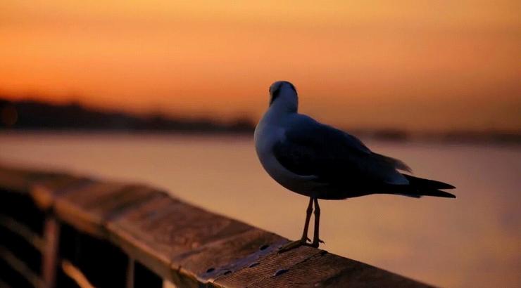 视频由腾讯混元视频生成,提示词:200mm长焦镜头,对准一只停在栏杆上的海鸥。羽毛的纹理清晰可辨,前景的木栏杆温柔虚化。远处的落日和海平面融化成金红色的光影
