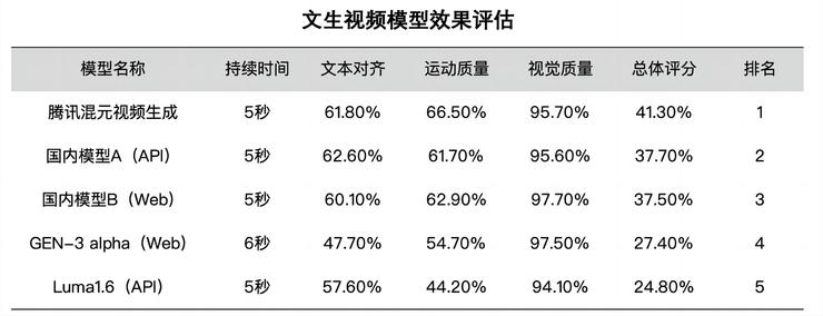 在与国内外多个顶尖模型的评测对比显示,混元视频生成模型在文本视频一致性、运动质量和画面质量多个维度效果领先,在人物、人造场所等场景下表现尤为出色。
