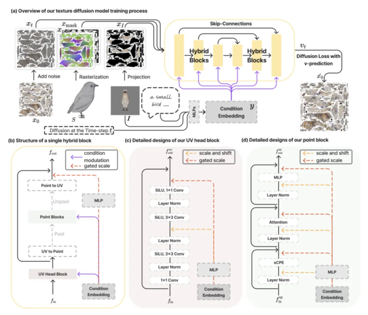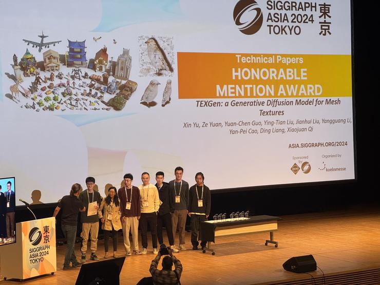 AI 科技评论在会场联系到了该篇论文的一作余鑫,他当前在香港大学就读博三,师从齐晓娟。据他介绍,「我们做的模型不需要依赖于 2D 升 3D 的方式,直接训练一个原生的 diffusion model 输出 3D 纹理内容,这种原生的 3D 模型能一次性生成整个物体的纹理。」