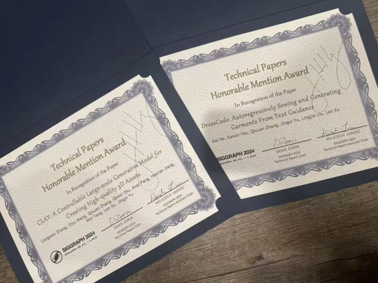 去年,影眸曾考虑过服装生成的市场,其发表的《DressCode: Autoregressively Sewing and Generating Garments From Text Guidance》也在 SIGGRAPH 主会拿过荣誉提名奖,主要介绍了一种专为 3D 服装设计的生成式 AI 框架 DressCode。