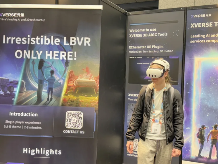 据元象引擎和 AIGC 算法负责人黄浩智介绍,「我们主要以超采样配合性能优化带来高清晰度画面,品质清晰度、不眩晕以及帧率稳定是我们大空间 VR 的优势。」