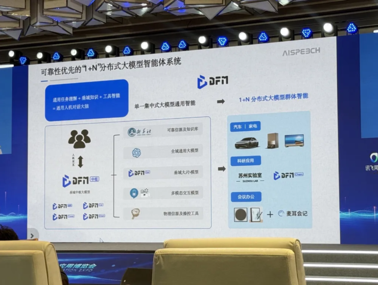 做这套体系时,思必驰用分布式的方法将参数规模千亿、百亿、十亿等全尺度的大模型结合在一起,形成具备工具智能的可靠系统,这样才能实现更高的可靠性与产业落地。