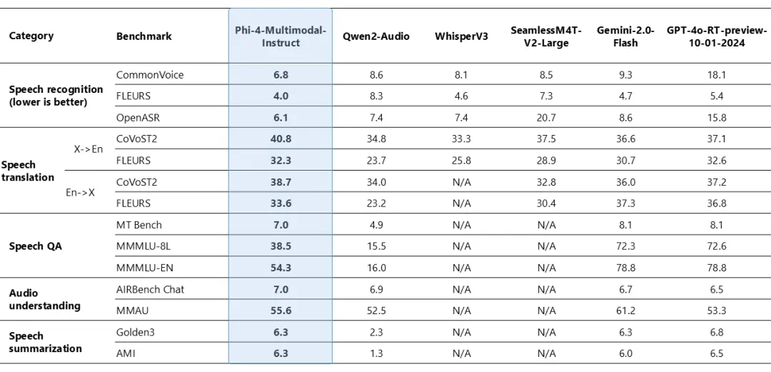 文章来源于互联网:微软Phi-4家族新增两位成员,5.6B多模态单任务超GPT-4o,3.8B小模型媲美千问7B