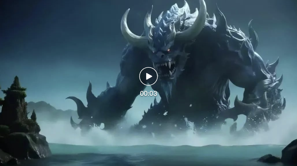 创作者 @盈步婀娜用 Vidu 首尾帧尝试再现了东海龙王出水画面。