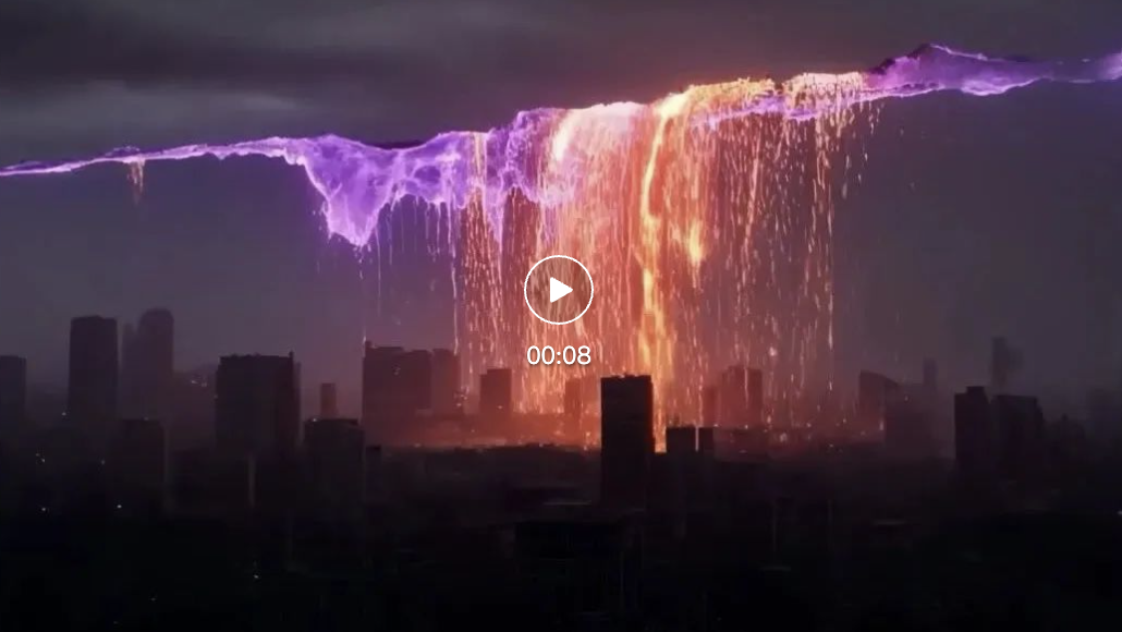 创作者 @画 AI 的狼 利用 Vidu 的参考生功能进行了二创, 只用了一张黑色城市背景附带紫色裂缝的图片,加上提示词,生成了如下视频。