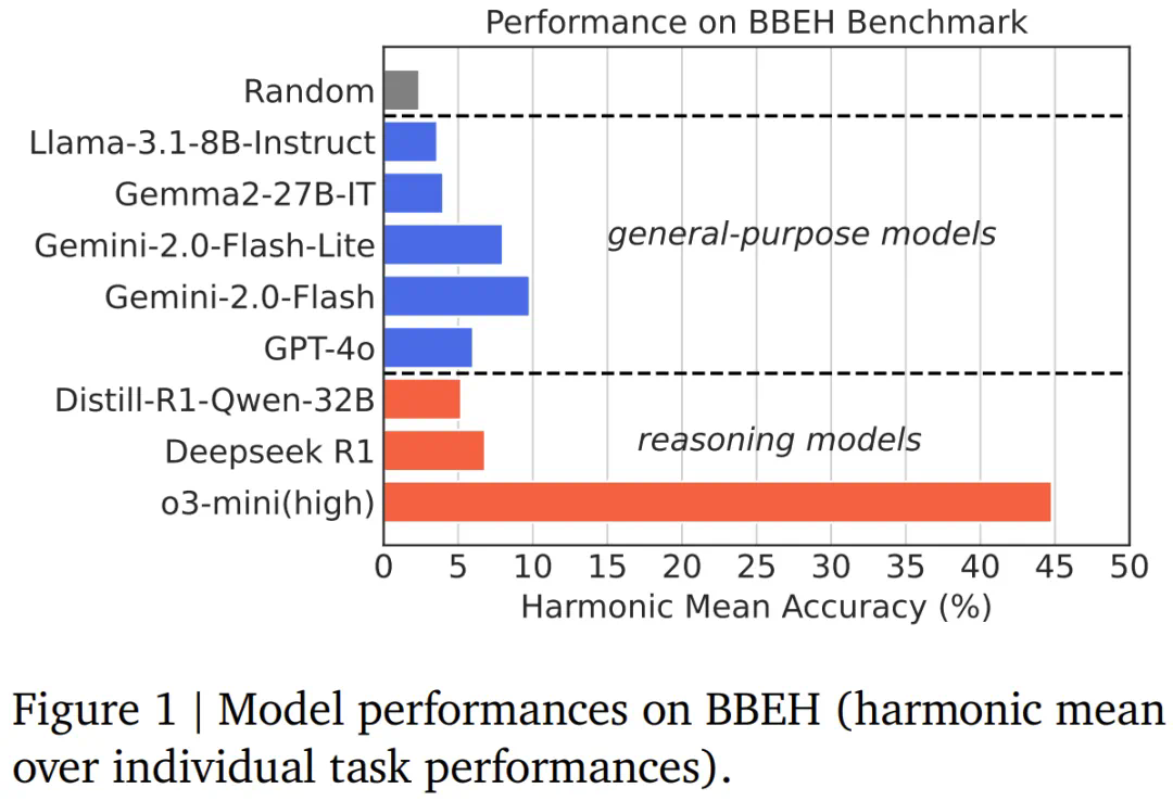 文章来源于互联网:谷歌发布BIG-Bench超难基准:DeepSeek-R1得分6.8,只有o3-mini超过10分