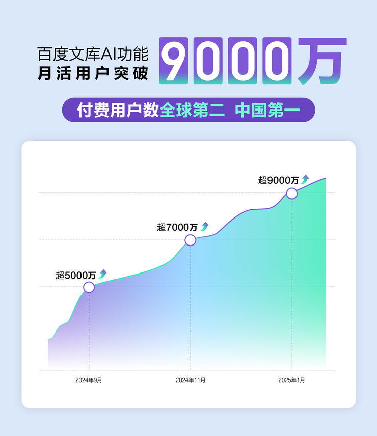 1月21日,在百度AI DAY活动上,百度副总裁,文库事业部、网盘事业部负责人王颖透露,百度文库AI功能MAU已突破9000万,同时,由百度文库和百度网盘联合打造的AI创作新物种“自由画布”开启公测。