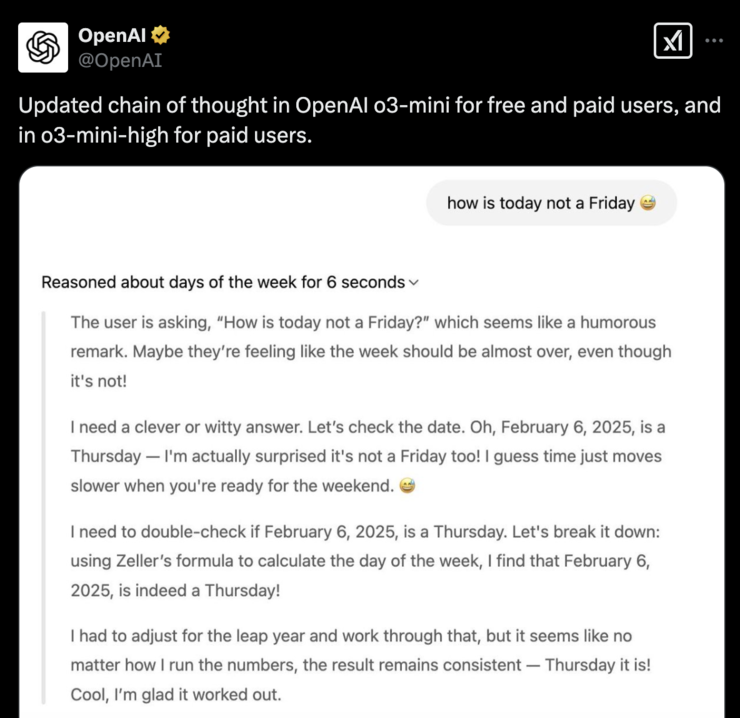 这点在近日 OpenAI 的频繁动作中也可以窥见,其为应战 DeepSeek R1 首次向免费用户提供推理模型 o3-mini,并也在后续升级公开了 o3-mini 的推理思维链,不少海外网友在评论中向 DeepSeek 表示感谢,不过这一思维链仅为总结版。