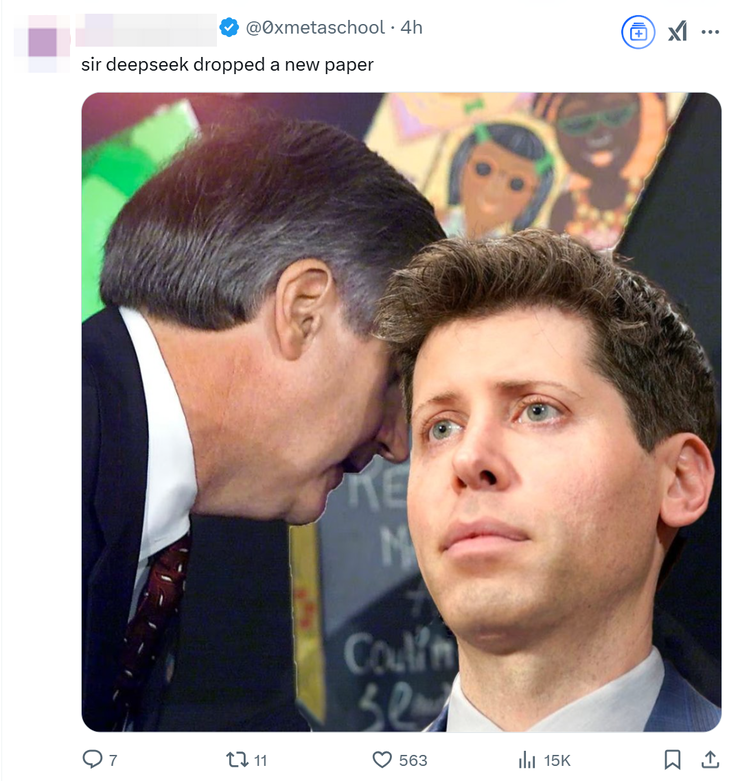 看热闹不嫌事大的网友甚至还借此调侃奥特曼:DeepSeek 又发了一篇很强的新论文了哦!