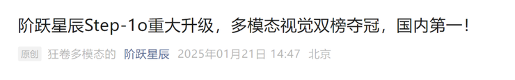 在频频获奖的那段时间,阶跃更是直接把官号改为:“狂卷多模态的阶跃星辰”。