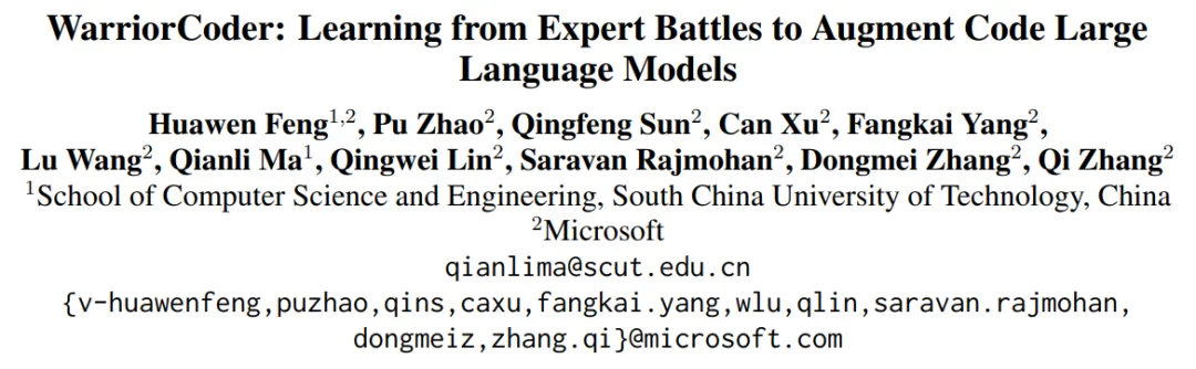 论文标题:WarriorCoder: Learning from Expert Battles to Augment Code Large Language Models -