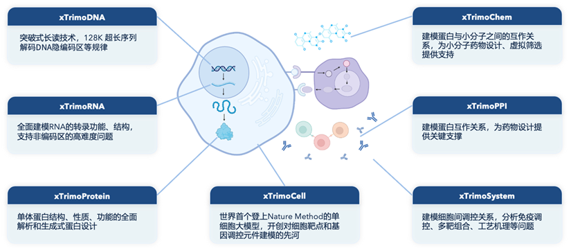 如今,xTrimo V3覆盖了DNA、RNA、蛋白质、细胞、化合物-蛋白互作、蛋白-蛋白互作及生命系统等七大主流模态,实现了从碱基对到细胞集群的全尺度建模。