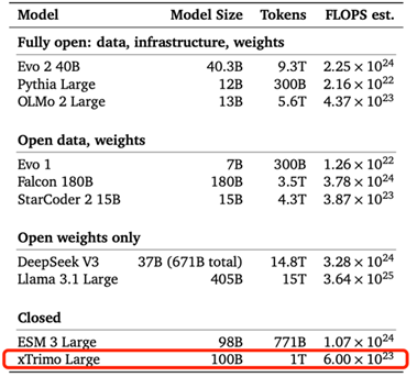 正当全球科研人员为这一突破性成果热议时,该论文中的特殊标注揭开了中国AI的实力——来自中国公司百图生科xTrimo系列大模型,被Evo2的研究人员列为「参数规模更大但尚未开源的竞争对手」,揭示中国生物大模型的崛起。