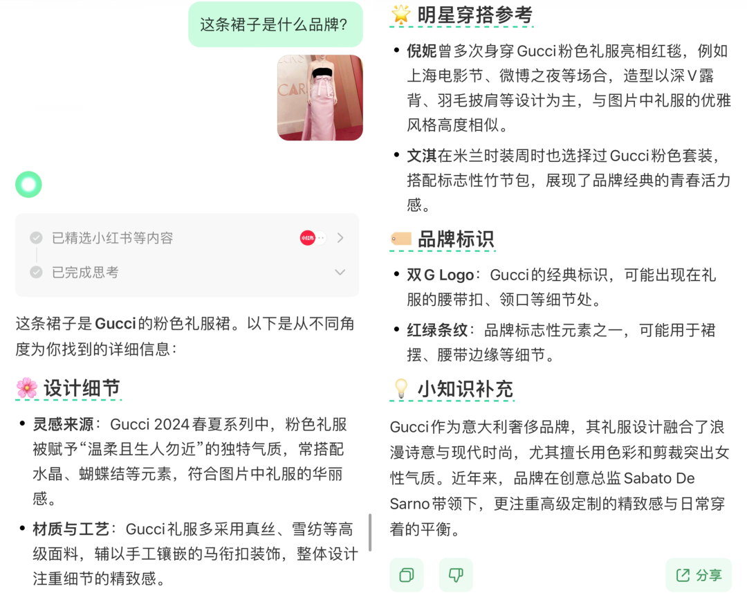 我们让点点识别一下她在奥斯卡颁奖礼上的礼服品牌。