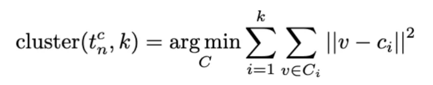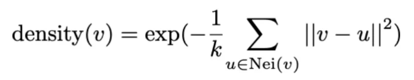 (2)密度估计:聚类后,根据簇内 tokens 与其他 tokens 的距离,估计每个簇的密度,低密度的 tokens 会被过滤掉。密度估计公式为: