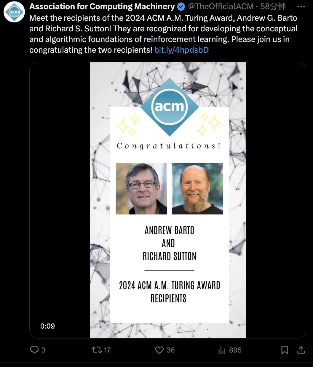 强化学习先驱 Andrew Barto 与 Richard Sutton 获得今年的 ACM 图灵奖。