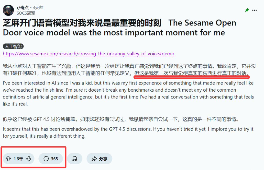 体验了一款名为 CSM 的全新对话语音模型后,有用户直接在 Hacker News 上写道: