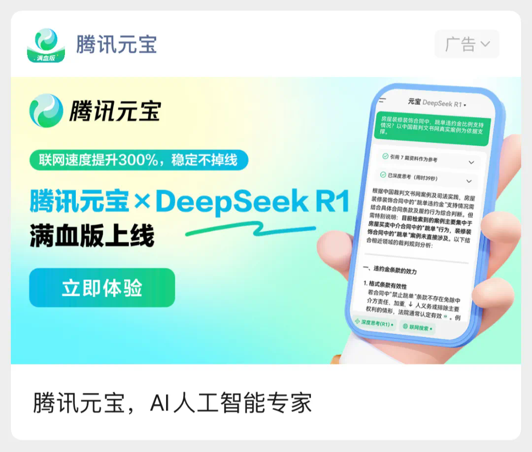 刷个公众号、朋友圈,冷不丁就跳出个「「腾讯元宝,AI 人工智能专家」的字样: