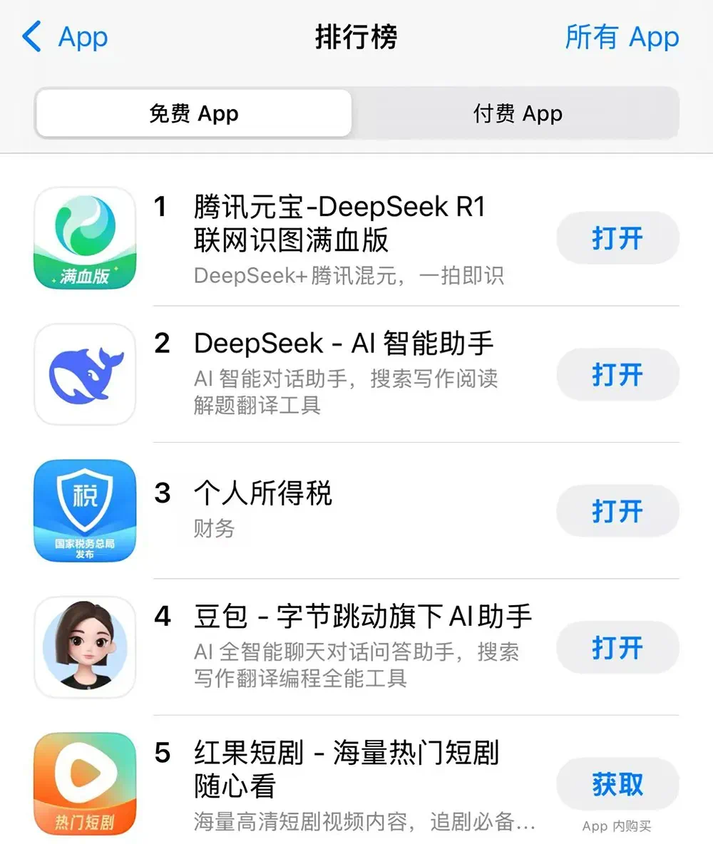 3 月 3 日,腾讯元宝反超 DeepSeek,登顶中国区苹果 AppStore 免费榜榜单第一。
