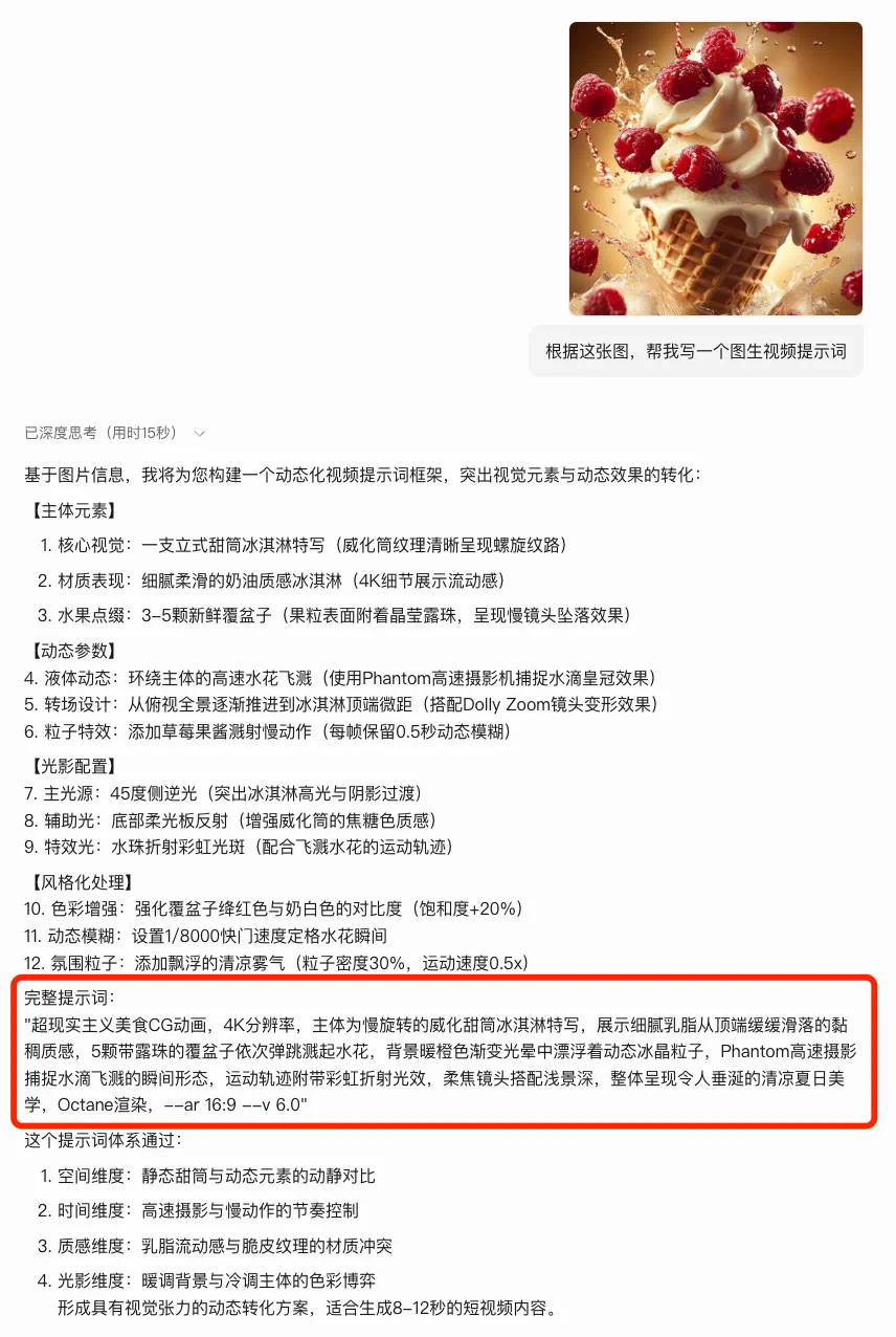 由于混元「图生视频」提示词不能超过 200 字,我们可以将其简化一下: