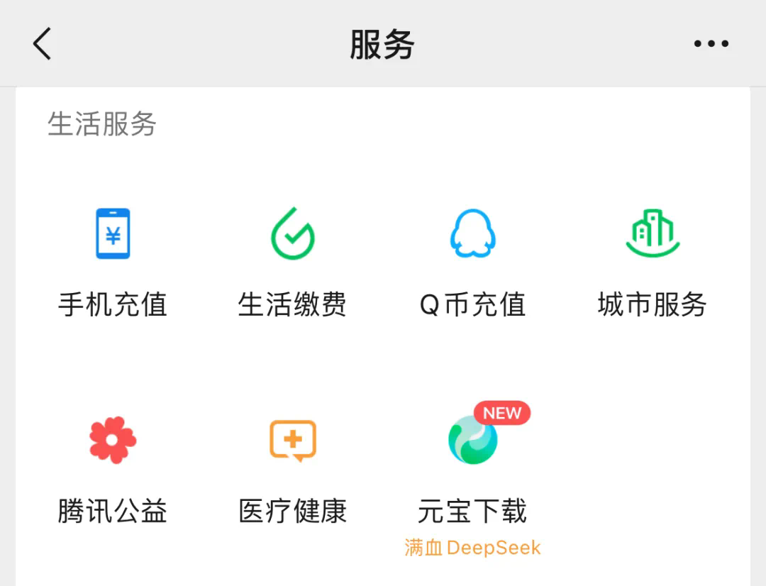 充个话费,微信「生活服务」栏里就赫然躺着个「元宝下载」: