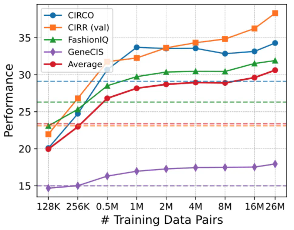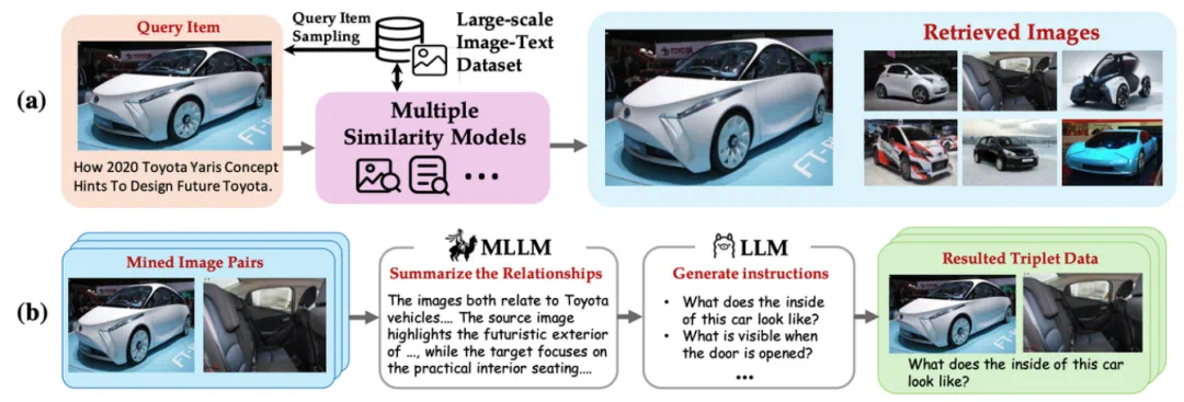 优异的可扩展性:MegaPairs 结合多模态表征模型、多模态大模型和大语言模型,在海量图文语料库中高效挖掘多模态三元组数据。其算法能够以极低成本持续生成多样化且高质量的多模态三元组。本次发布的版本涵盖 2600 万条样本,为多模态检索模型的训练提供了大规模、高价值的数据支持。