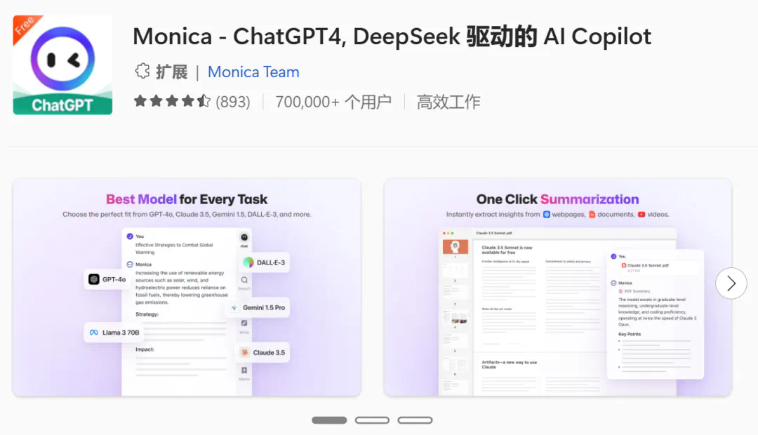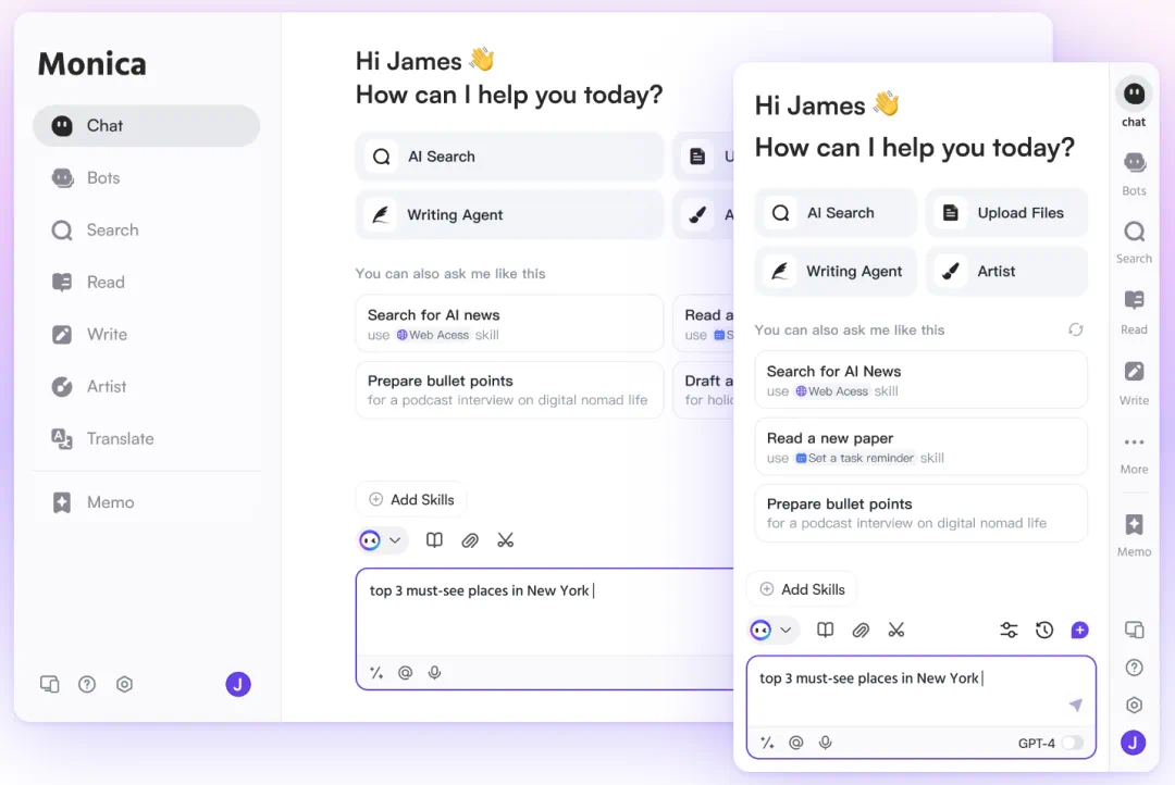 此外,Monica 还可以作为 Chrome 和 Edge 浏览器扩展使用,同时提供有桌面端和移动端应用程序。