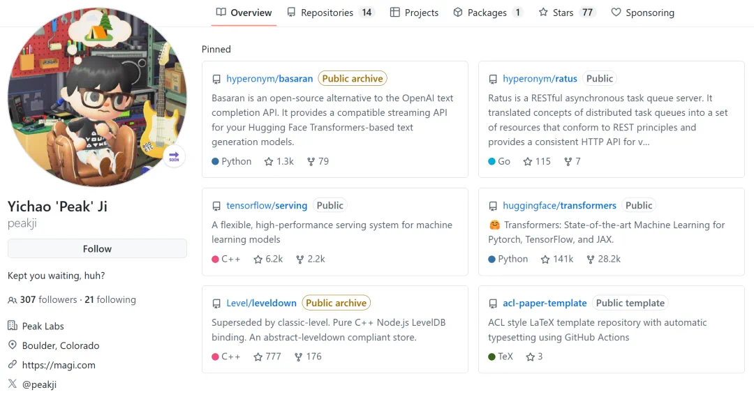 同时,Manus 宣传视频中出镜的 Yichao Peak Ji(季逸超)为联合创始人兼首席科学家,也是一位 90 后程序员和创业者。根据网上搜到的资料,他是 Peak Labs 创始人、Magi 智能搜索引擎的开发者,还曾创建过一个名为 Steiner 的推理模型,用以复现 OpenAI o1。