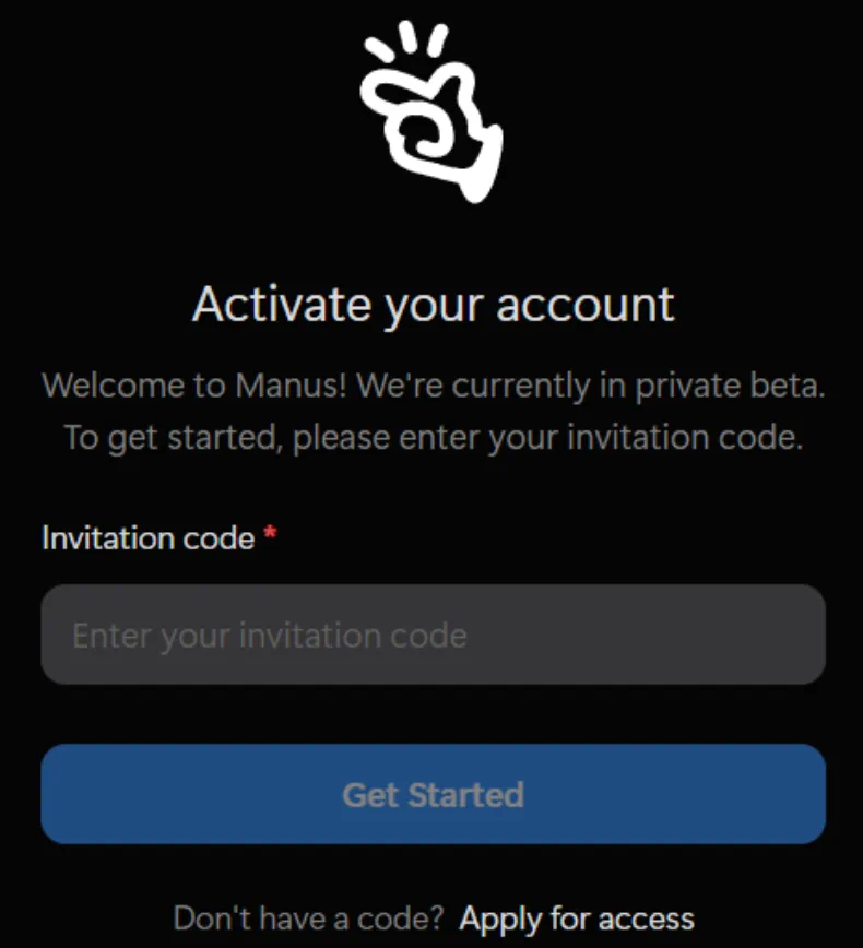 不过遗憾的是,目前 Manus 还没有完全开放注册,新用户还需要邀请码。