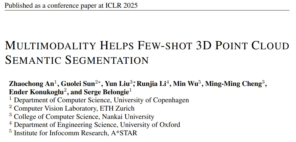 文章来源于互联网:ICLR 2025 Spotlight |「免费」多模态信息助力3D小样本分割