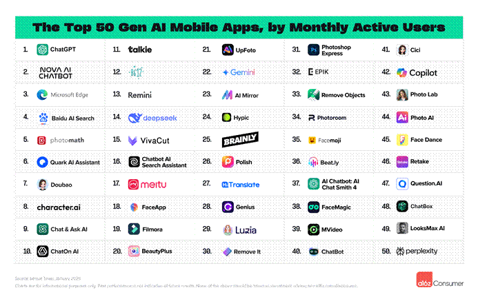 文章来源于互联网:夸克、DeepSeek登上全球AI应用排行榜TOP10