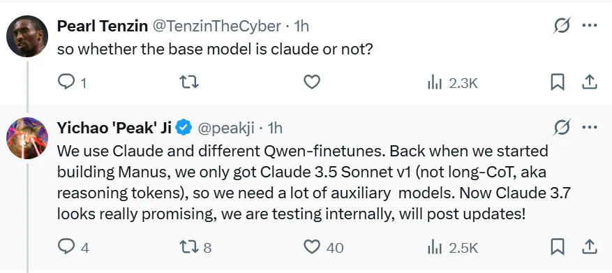 Manus 并不是一个独立的模型,基于 Claude Sonnet 构建;
