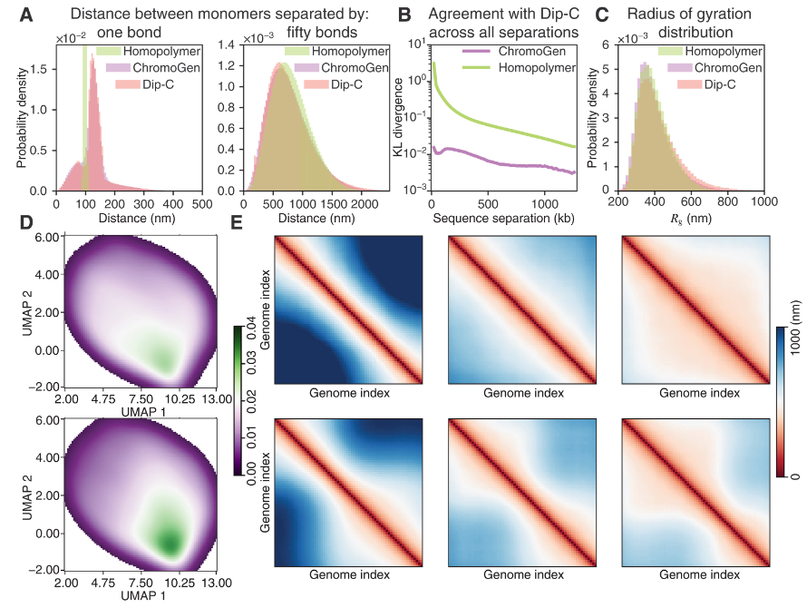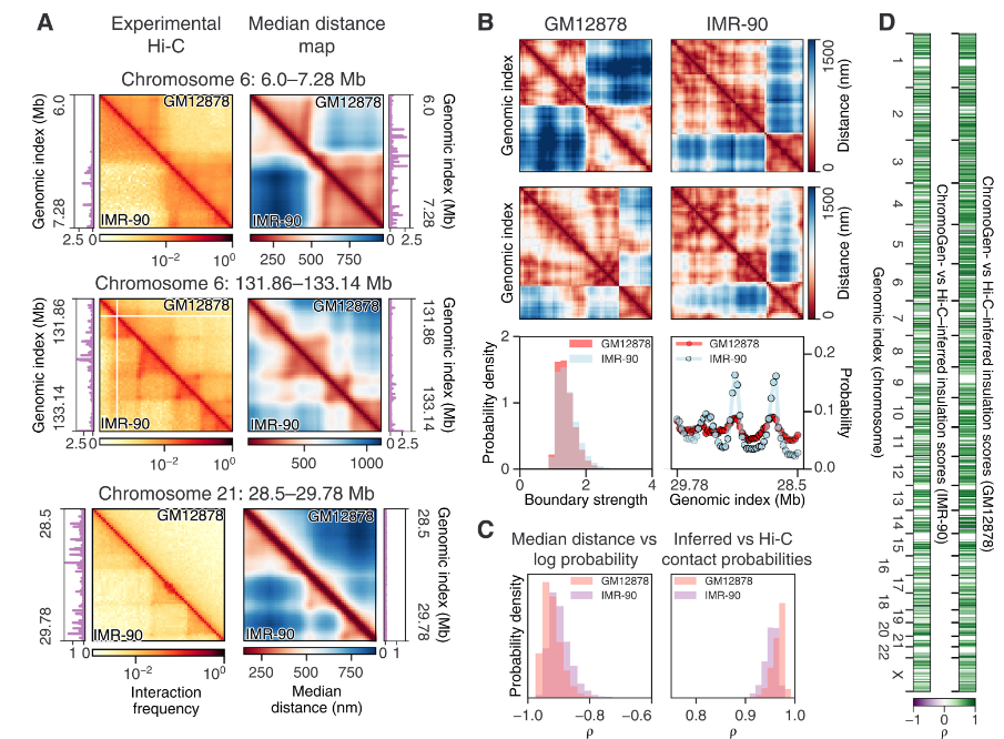 ChromoGen,一种有效生成区域和细胞类型特异性染色质构象的智能框架。ChromoGen 产生的构象再现了群体 Hi-C 实验中揭示的各种结构特征以及在单细胞数据集中观察到的异质性。