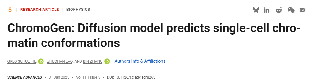 他们的研究以「ChromoGen: Diffusion model predicts single-cell chromatin conformations」为题,于 2025 年 1 月 31 日发布在《Science Advances》。