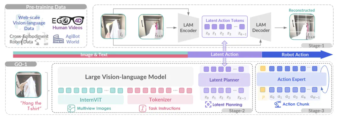 智元提出了全新的 Vision-Language-Latent-Action (ViLLA) 架构。