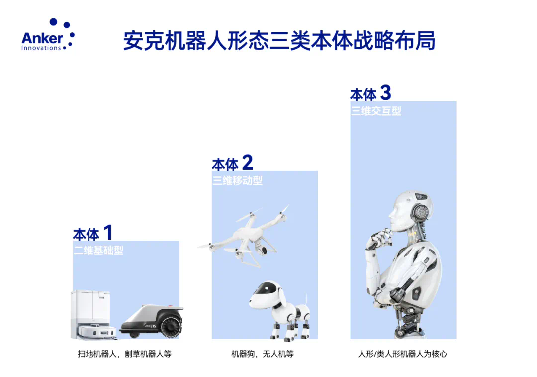 Frank Zhu 指出,安克的机器人技术栈和产品将围绕三个本体进行布局: